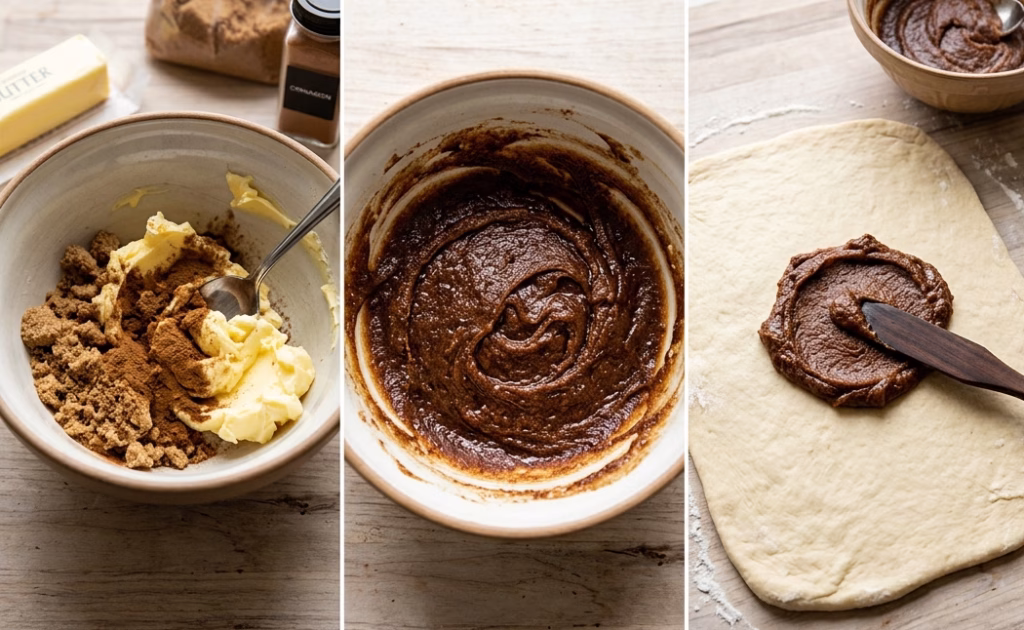 - Mix brown sugar, cinnamon, and softened butter to create a rich filling. Spread it evenly over the rolled-out dough to ensure every bite has a sweet swirl.