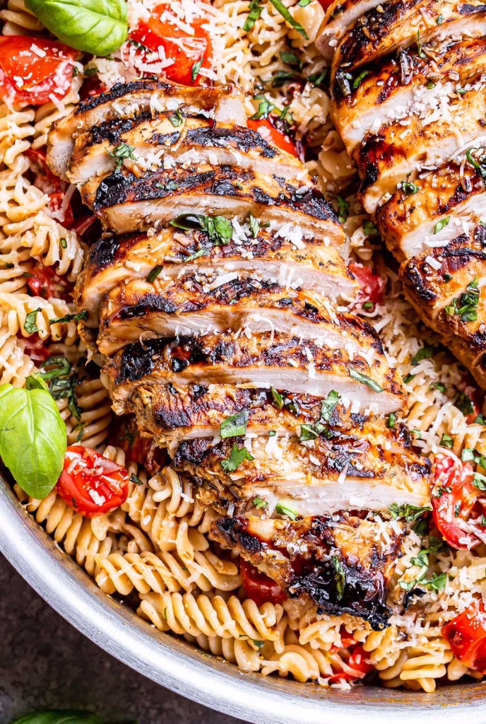 Tomato Basil Pasta with Balsamic Grilled Chicken Recipe | Flavorful