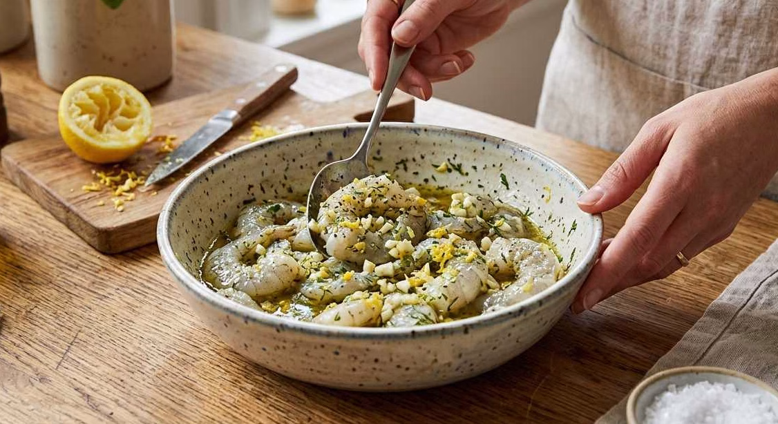 Let the shrimp sit for about 10–15 minutes so they absorb all the citrusy and garlicky goodness. This step makes a big difference in flavor.