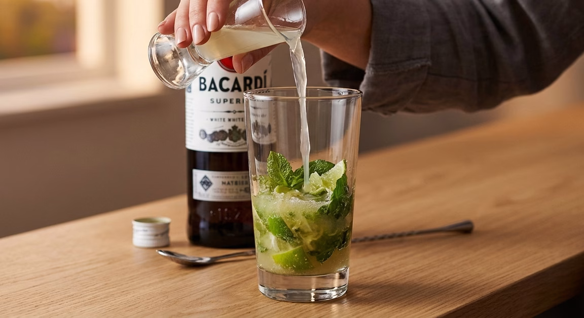 I like to adjust the amount of rum depending on the occasion. For a light drink, I add less, and for a stronger version, I increase it slightly. If you prefer a non-alcoholic mojito, simply skip the rum and continue with the next steps.