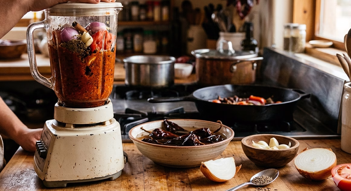 Start by soaking dried chilies in hot water until soft and pliable. Then blend them with onions, garlic, tomatoes, and spices. This creates a rich, smoky base that defines quesabirria flavor.